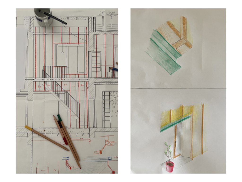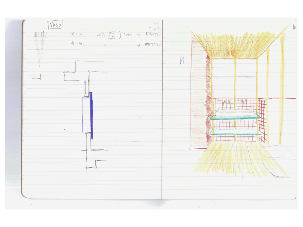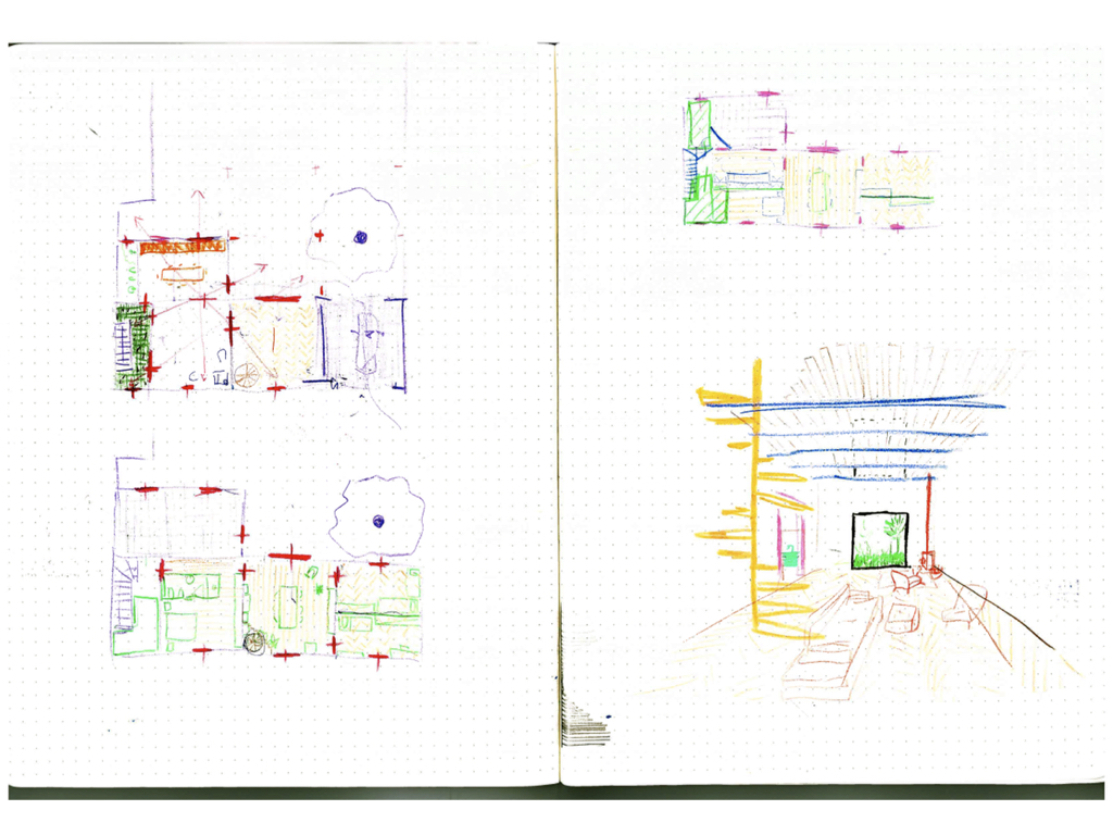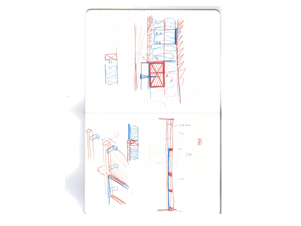 Essendo un progetto senza profitto per lo studio l’intero processo progettuale si è concentrato nel ridurre gli sforzi e al tempo stesso ha permesso di essere particolarmente precisi negli interventi. Lo strumento del disegno a mano libera ha permesso di concentrare gli sforzi e quasi tutto è stato definito con disegni molto semplici, prospettive, piante e dettagli disegnati a mano.